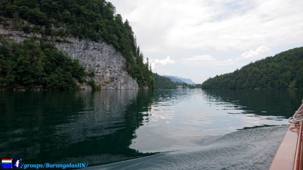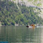 Útközben a tó közepe táján megállt a hajó (így szokták), viszonylag közel a sziklafalhoz, és zenei bemutatóval illusztrálta a hajó kísérő a visszhang jelenséget a trombitáján játszva.