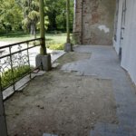 A mai látogatás során tapasztaltak. A terület őrzés nélküli, ott jártunkkor 3 látogató kereste fel. A parkban a fű le van nyírva, gazosodást nem tapasztaltunk. Az épület állapota tragikus, nem vagyok építész, de szerintem erre az épületre költeni kidobott pénz, a még meglévő tégla mállik szét, ezt megmenteni csak elbontással és újjáépítéssel lenne értelme.