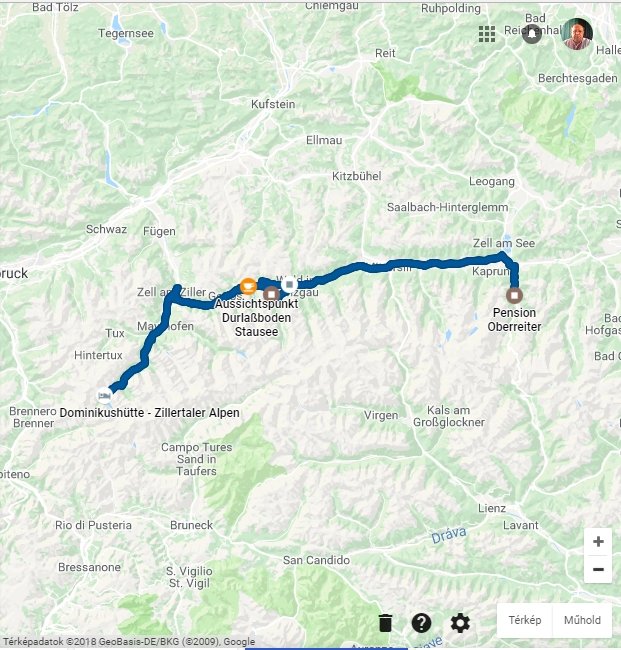 Az utazás során megtett útvonal a Google idővonalamon rögzítve: