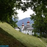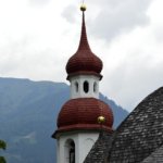 Zillertalt elhagyva, a Gerloßstraßera kapaszkodás közben, már korábbi útjaink során is láttunk az útról egy különös formájú templomot (nem az Alpokban megszokott hegyes torony), de korábban nem találtam megállási helyet a a kanyargós emelkedőn, ráadásul pont egy 360 fokos visszafordulónál van a templom. Most nem mentem el mellette, kissé szabálytalanul, a kanyarban lévő buszmegálló legelejében álltam meg, Feleségem az autóban várt, ha valaki kifogásolná a megállást, tud jelezni, hogy a templomban vagyok.