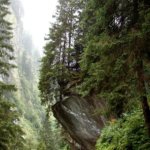 Az Étterem pedig pont, csütörtökön “Ruhetag” (szünnap) miatt zárva volt, de egy táblára kiírták, hogy ha megkerüljük az éttermet, akkor ott fent valahol van egy Hütte (menedékhely), próbálkozzunk ott a vendéglátással. Próbáltam legalább néhány képet készíteni, de elég reménytelen volt, az eső miatt. Beöltözve esőkabátba, esernyő az egyik kézbe, hogy ne ázzon szét a kamerám, egy kézzel (stabilitást majd adja a kamera stabilizáló rendszere, adta is!) azért készült néhány kép.