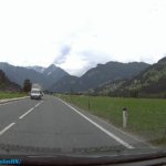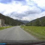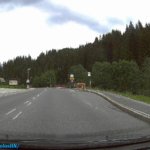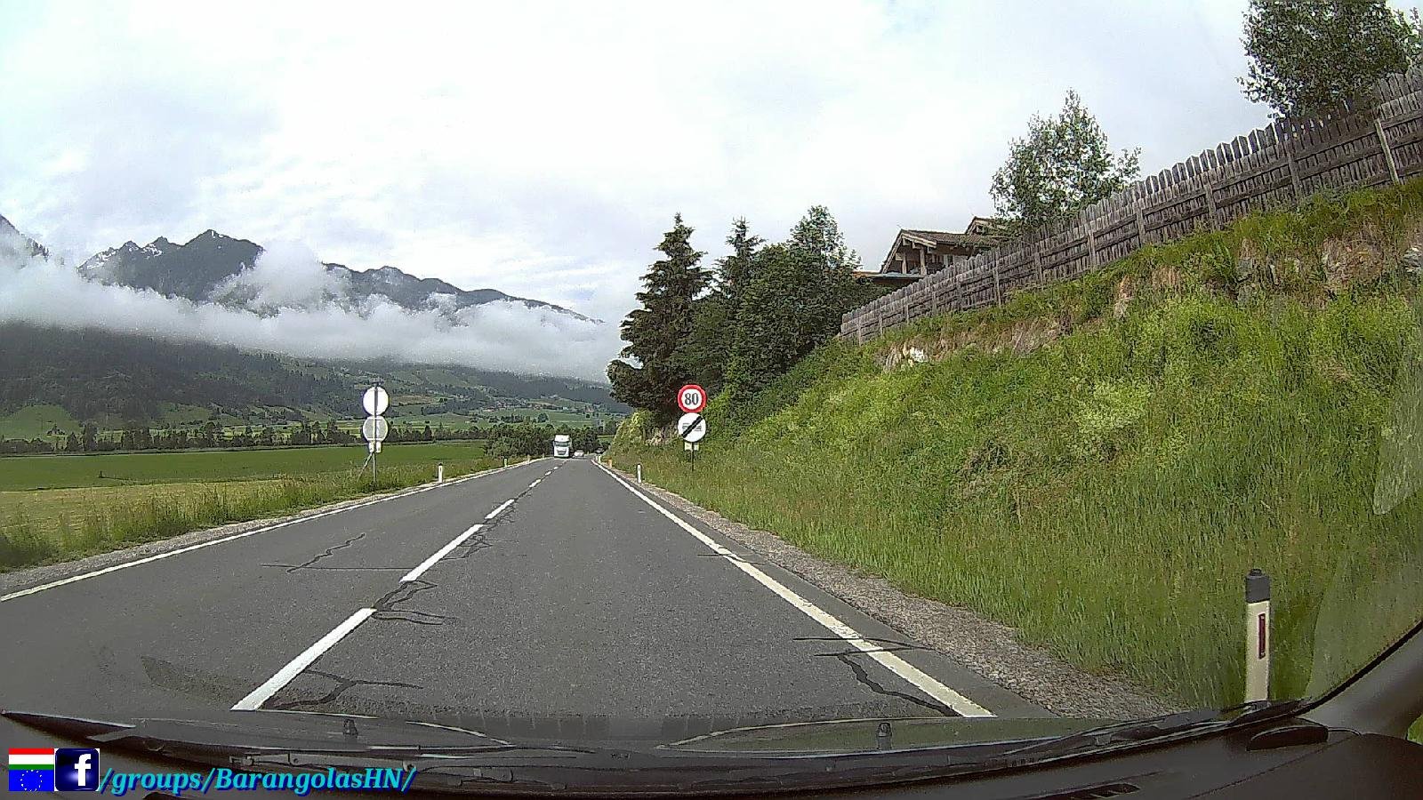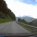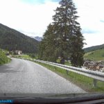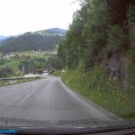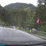 Útközben a táj csodásan nézett ki, az előző napi záporokból eső csapadék elpárolgása következtében, az alsó felhőszint kb. 1500 méteren a hegyek derekán egy “gallért” alkotott. Az út a Gerloßstraße-n át vezetett, de odafelé nem a főúton (fizetős, napi jegy, 9,50€), hanem egy hegyi úton át vezetett. Ugyan Én is erre szerettem volna utazni, de a Google GPS is ezt az utat választotta, gondolom, a fizetős út miatt. Ezen az úton már utaztunk néhányszor, de most is egy kalanddal ért fel. Helyenként csak egy autónyi szélességű, így a szembe forgalom esetén valakinek vissza kell tolatni egy kitérőig. Hát nekünk is volt “találkozásunk”.