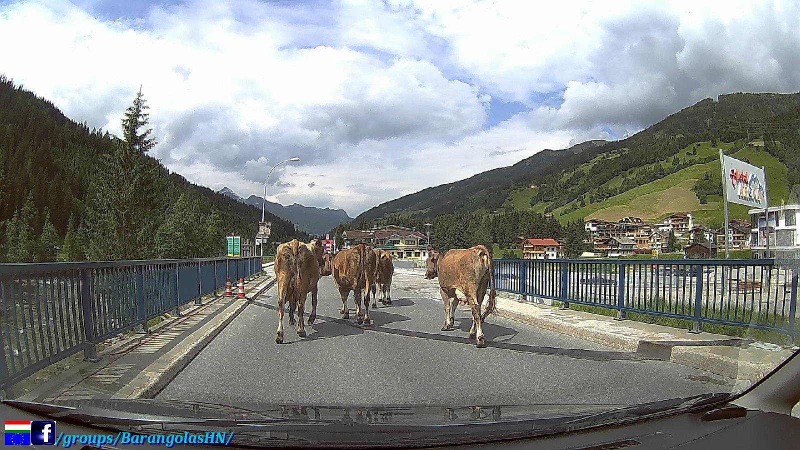 A Gerloß település előtt jelzi egy tábla, hogy “Vigyázat 17 km hosszan tehénveszély”, bizony ez igaz, bárhol számítani lehet az úton bóklászó tehenekre.