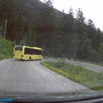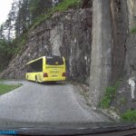 Megvártuk a jelzőlámpa zöld fényét és elindultunk lefelé, előttünk egy hegyi, helyi járatú busz lavírozott a szűk alagutakban (helyenként majdnem súrolta a mennyezetet, a kanyarok bevételéhez pedig figyelmesen kellett lavíroznia, hogy bevegye a 360 fokban visszakanyarodó utat, meg ne érjen le az eleje/vége a busznak, de hát ezek a sofőrök csukott szemmel is végigmennek már ezen az úton, hogy naponta megteszik 10-20 szór.