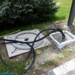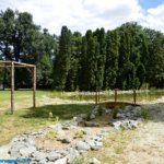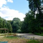 Ha már eljöttünk a kastélyhoz, legalább nézzünk körül, megtörtént. A kastély és a mellék épületeik újnak néztek ki, amit valóban felújítottak, minden zárva. A kastély környéke kockakövezve, a park többi részén a “dísztó” környéke kivételével szinte egy kapavágást sem tettek, na jó, állítottak mindenfelé “Vonal világító” oszlopokat (a füves területekre is, oka?), ennyi. Érdekes volt, hogy jó néhány oszlop mellett feltúrva, beton kocka, melyből gégecsövek álltak ki, benne mintha áram kábelek lógtak ki, céljuk fogalmam sincs.