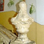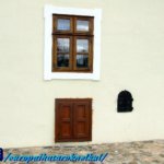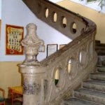 Az emeletre vezető kőlépcső és korlát éppen maradt, kár, hogy tejeskávé színű olajfestékkel átfestették.