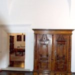 A kastély egykori berendezését rekonstruáló enteriőröket is kialakítottak a múzeumban. A földszinten, az épület egyetlen eredeti boltozott termében a XVII. századi funkcióinak megfelelően kamra-raktár, mellette pedig konyharekonstrukció látható. Az emelet termeinek eredeti funkciójára csak a gerendamennyezetes nagyterem berendezésekor lehettek tekintettel a kiállításrendezők. A XVII. század elején, amikor a kastély fénykorát élte, e teremben volt az ebédlő. A középen elhelyezett, a XVI. század derekáról származó nagyméretű asztal, és körülötte a székek, a tálalószekrények, s az egyéb berendezési tárgyak jól érzékeltetik a késő reneszánsz lakáskultúra jellemzőit. A többi emeleti terem berendezési tárgyai is azt a korszakot idézik, amikor még a késő reneszánsz kastély szinte eredeti pompájában állott fenn.