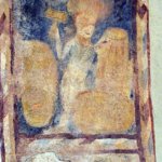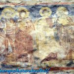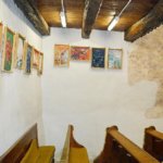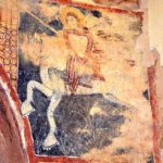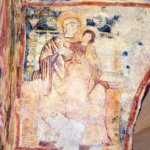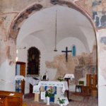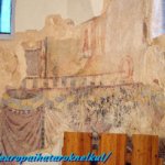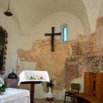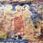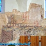 A hajó északi falán freskómaradványok láthatók, amelyek valószínűleg 13. században készülhettek. Felül az apostolok sorakoznak, akik a háromkirályokat követik Jézus köszöntésére. Alul a szenvedő Krisztus látható és Szent Mihály, aki kardot és mérleget tart. Így helyezi mérlegre az eléje érkező holtak lelkeit. Ettől jobbra áll Szent Miklós. A diadalív déli oldalán látható Szent Györgyöt ábrázoló freskó 1335-ben készült. A 15. században készültek az év hónapjaira jellemző tevékenységeket ábrázoló freskók, ezek a belső oldalon láthatók.