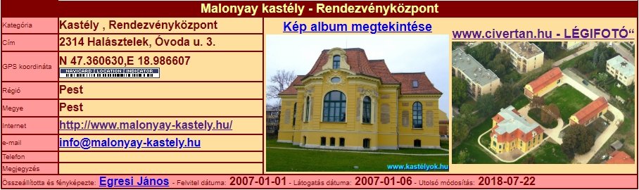 Az alábbi képen egy hely bemutató lapjának teljes adatlapját mutatja: