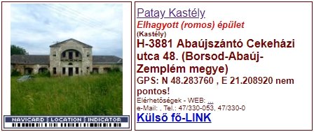 Talán a legpraktikusabb a Térképes keresés, megjelenítés, mert ezen a felületen a jelölő fölé víve az egér mutatót megjelenik az alábbi adatlap formátum: