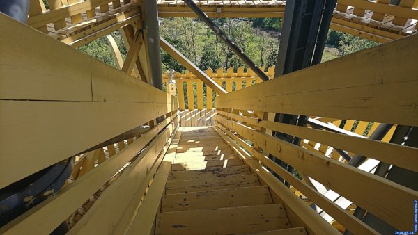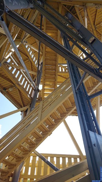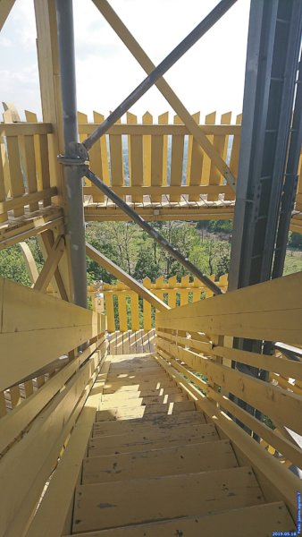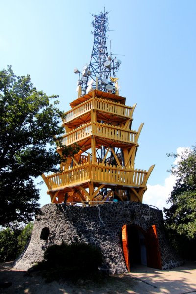 két út közül választhattam, volt egy meredek lépcsős útvonal és volt egy enyhe, sétány. Gondoltam, hogy az enyhét választva biztosan többet kell gyalogolnom, de mégis ezt választottam. Elindultam rajta, végül körbeértem a hegytetőt, de a kilátóhoz mégis csak a meredek, lépcsős úton jutottam fel. Pénztár, belépőjegy vásárlása után felmásztam a kilátó felső teraszára, bizony jó néhány lépcsőfokot meg kellett másznom. A bejáratnál (pénztár), WC is rendelkezésre áll a látogatónak.