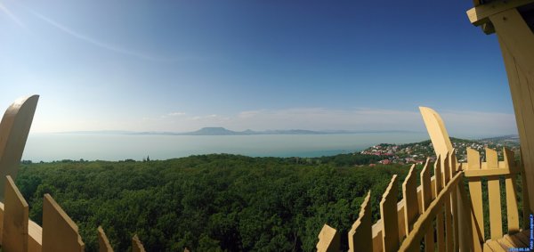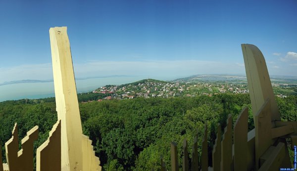 Felmászva több szakaszban elhelyezett falépcső vezet fel a felső kilátó teraszra, ahonnan körben csodás kilátásban gyönyörködhet a látogató, szemben a Badacsony jellegzetes hegye, egy picit távolabb a Szigligeti vár is látható, jobbra ellátni a Tihanyi félsziget felé is. Keletre a szembe lévő másik hegy tetőn, jól látható Fonyód másik kilátója a Sipos-hegyi kilátó.