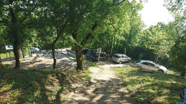 Amikor oda értünk telt ház volt már, néhány autótól. Ugyan ki volt rakva eg mozgássérült parkoló tábla is, de valójában kijelölt parkoló hely nincs hozzá. A felfelé vezető sétány végében parkoltam le. Mivel láthatóan mozgássérültek által nem megközelíthető helyről van szó, így csak együl indultam a hegymászáshoz, feleségem az autóban maradt és várakozott rám.