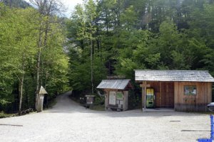 A kihelyezett térképet átnézve, látható, hogy a szurdok igazi bejárata innen kb 900 méter, ahol a pénztár is található. A szurdokban való látogatásért fizetni szükséges. Most arra egyébként se terveztem látogatási időt, így a pénztárig való sétáról is lemondtam. Visszaülve az autóba, egy hegyen átvezető erdei úton elmegyünk a másik végéig a szurdoknak, ahol elvileg (Interneten kinéztem) vagy egy Gasthof, és itt is van egy bejárat, pénztárral. A kirakott prospektusból látható, hogy sajnos ez a hely számunkra nem valószínű, hogy nyerő lesz egy sétára, a szurdokban a sétautak pallós utak, telis-tele lépcsőkkel. Minden esetre, ha mégis ide jönnénk látogatás céljából, akkor itt helyben meg kell szállni és egy egész napot kell betervezni a szurdok sétára. Az Internetes lapon azt is láttam, hogy van itt egy faúsztatós bemutató, fafeldolgozó fűrészteleppel, ami szintén egy élmény lehet, ez nem állandó program, havonta 2 alkalommal van erre lehetőség, egy szombat és egy vasárnapi napon. Ezt még át kell gondolni, hogy vállalkozunk-e erre, tekintettel feleségem lábsérülésére (emelkedő, lépcső kizárva).