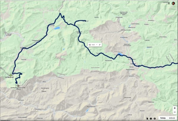 Mivel messze van, így ott nézelődéssel eltölteni nincs lehetőség 1 napos túraként, de arra biztosan elegendő, hogy megnézzük érdemes-e számunkra ide ellátogatni több napos progamként. Ez a hely a Hochkar (https://kirandulo.reblog.hu/a-felelem-hidja-var-a-turautak-edenkertjeben—hochkar) és az Erlebniswelt Mendlingtal (https://kirandulo.cafeblog.hu/2019/01/03/fausztatok-utja-a-legsokoldalubb-szurdok/). A Google térképen már korábban kinéztem ezt a két helyet, egymás mellett van, tehát egy utazással elérhető. Kilométerben és utazási időben nincs a szomszédban, de ismerve a lehetőségeimet, belefér 900 km 1 napba, amit meg lehet tenni 11,5 óra alatt.
